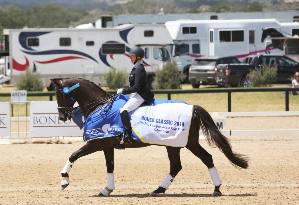 The pair won Saturday’s Grand Prix test and went on to win the deciding Freestyle to Music, gave Rozzie the opportunity to step into her comfort zone, riding to music she chose and arranged to fit with her own choreography that so beautifully suited her dancing partner. It was a light and ethereal performance that resoundingly confirmed the harmony and ease of this performance. The 5 judges awarded a wonderful score of 72.710%.